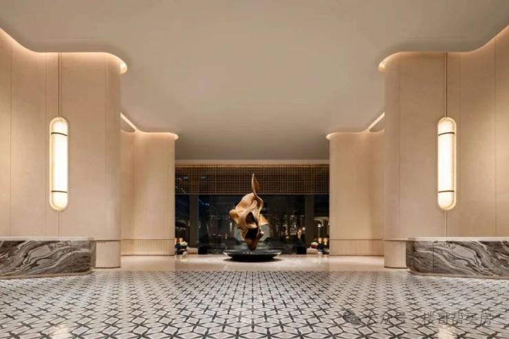 无论是正门的5块9米高的凿壁,还是9.9 米纵高的天际塔冠,都在强调“9”字,与未来20年走九运相呼应,寓意楼盘和业主行大运。