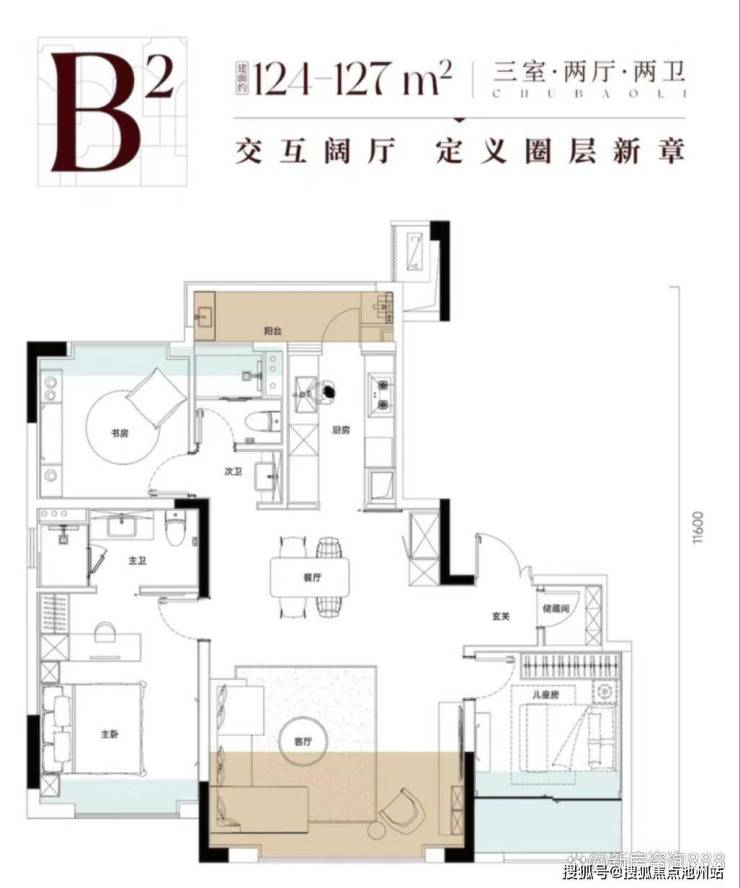 建面约124-127平三房户型
