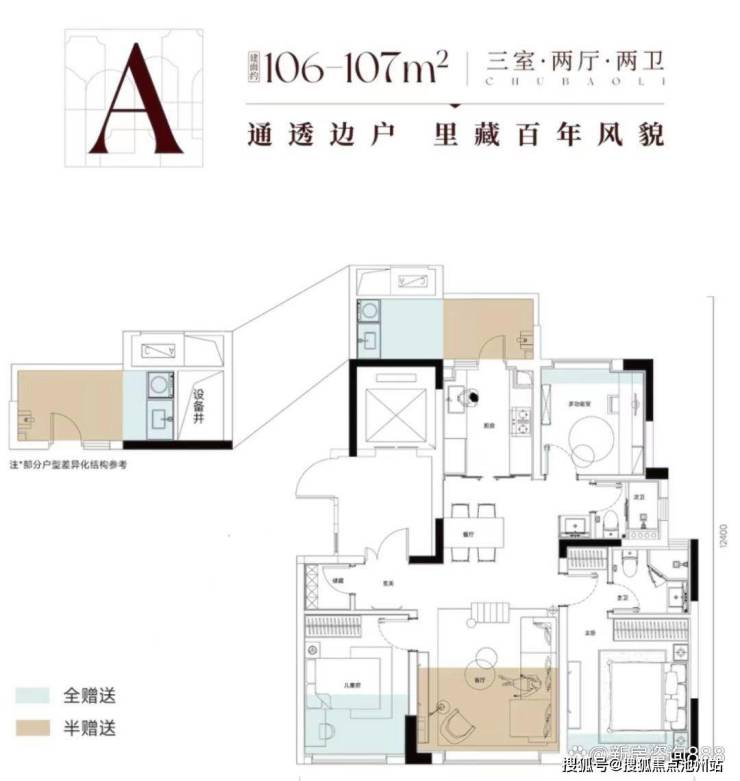 建面约106-107平三房户型