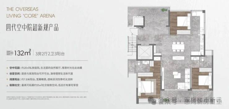 产品的参数确实豪横:最小的132㎡也拥有约20㎡的空中庭院,试想一下,放茶台、搭帐篷、办星空派对,客厅的物理边界正无限延伸。