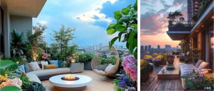 为了满足亲子、社交等多样化空间需求,项目为每户配备了约20–32㎡的私享庭院,部分户型更有约6米挑高阔景露台,可供业主定制茶室或搭建亲子露营乐园等。
