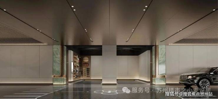 地下车库 :青石点金,选取奢华石材,以铜线镶嵌;详纹迎归,海棠文入户专属归家仪式;定制归家,依据业主志趣不同,定制归家场景