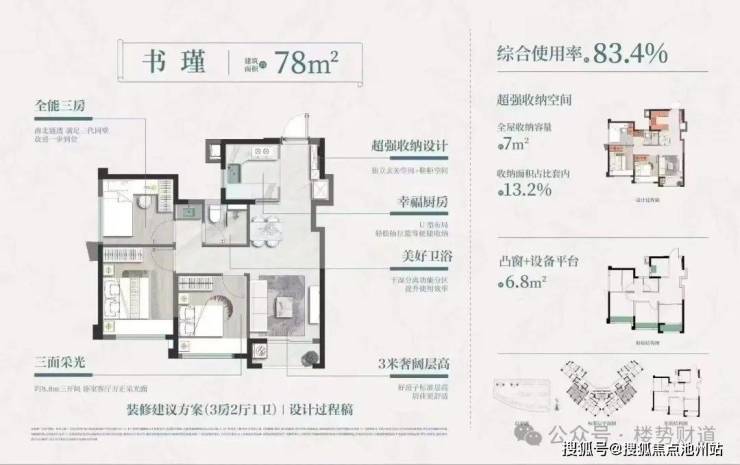 ✔️ 79㎡三房三面采光,主卧兼容1.8米床+整面衣柜[1]
