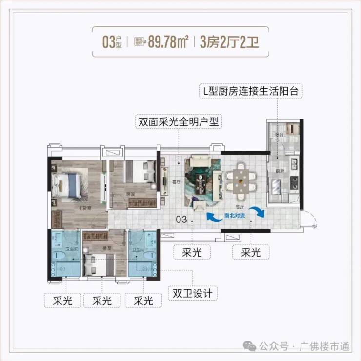 南北对流,通透明亮