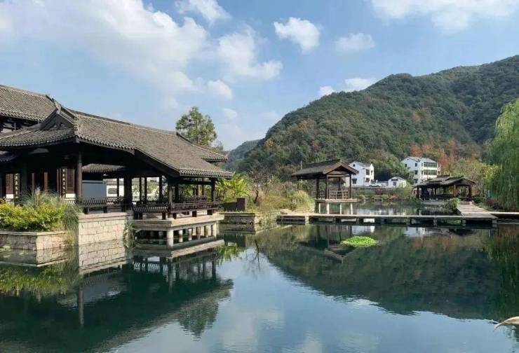 项目毗邻古韵欢潭景区、大岩山风景旅游度假区、大岩寺、青沐寨营地、吉山梅园、会稽山兜率天景区、鉴湖旅游度假区、峙山公园、香山寺、白塔湖国家湿地公园等。进化镇为生态优先型地区,区域内没有重工业污染,交通污染少,从内在山水到外部环境都是鲜氧环抱之地。欢潭村负氧离子年平均浓度2225.0个/m³,有助于人体进入深度睡眠。