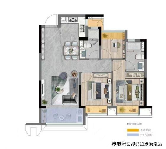 或许在改善家庭眼中,云潮中心建面约113㎡户型将是理想居所,项目将该面积段产品分为南厅(B1)、边厅(B2)户型,在生活体验方面各有千秋。