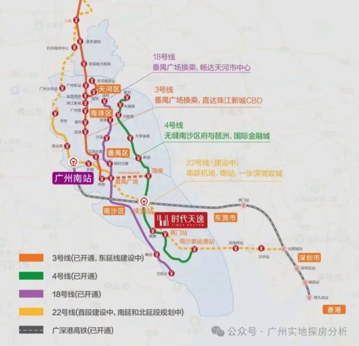 项目位于地铁4号线黄阁站上盖,站到区府万达2站换乘广深港高铁,通勤广深港超高效。
