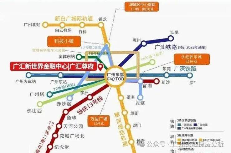 项目交通配套:项目靠近广州东部首个TOD大型综合体,坐拥4条地铁+3条国家铁路+2条轻轨,汇集广州地铁13、28、20、16和28号支线,广深、广汕、京九三条高铁以及穗深、新白广城际两条城轨等。广园快速路、沈海高速、广深大道等交通要道。