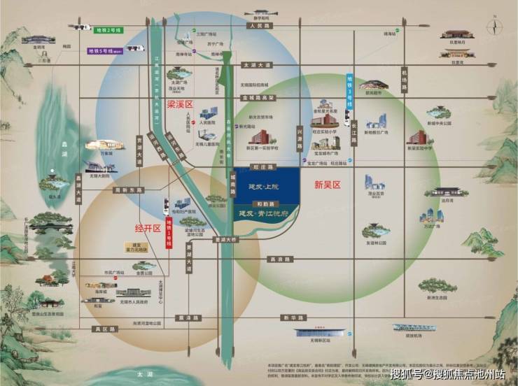 周边多维路网环绕,距离地铁3号线站点1公里,未来地铁5号线(建设中)建成后,新光路站点举步可达,此外,菱湖大桥的通车更是打破了交通壁垒,从地块出发即可一桥之隔直达经开区。地块坐拥多商圈环绕的便利,紧邻市区南长街核心区域,同时处于古运河文化带范围内,既能便捷享受城市中心的成熟配套,又可浸润千年运河的人文底蕴。