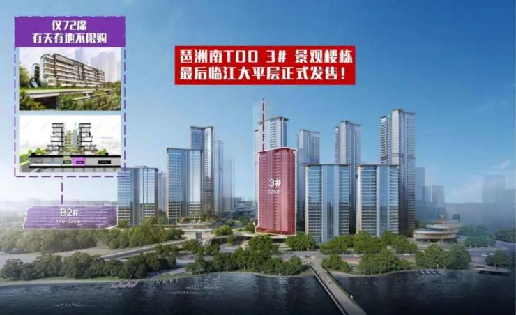 全盘最后的300方以上大平层,3#在白地区,北望琶洲天际线,能欣赏黄埔涌头排景观,南向望园,下楼即达中轴园林。