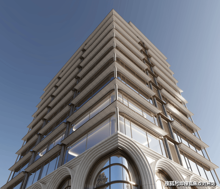 项目的外立面采用香槟金铝板搭配弧面玻璃,以及“鎏金冠顶”设计,这种设计思路已经被运用到武汉好几个四代住宅上了。