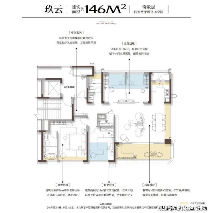 项目高层产品的户型图已经公布了,得房率95%起,大户型得房率超100%。