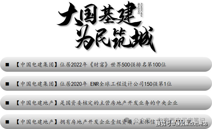 中国电建地产是国务院国资委核定的首批16家主营房地产开发与经营业务的中央企业之一,作为《财富》世界500强中国电建旗下房地产开发及城市综合运营业务的唯一平台,致力于成为国内一流的城市发展运营商。中国电建地产力担央企社会责任,筑良品、惠民生,已在32个城市(新区)开发运营了150余个项目。2021年位列全国品牌房企第47位,经营业绩保持稳健增长态势。