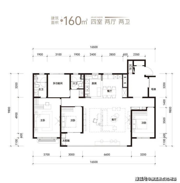建面160平产品,是妥妥的「真宽厅」四房户型。单论户型,除了不是三卫、不是电梯厅明厅,其他方面还不错。