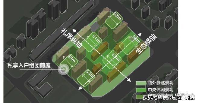 而维璟天珺采用的是点阵式布局,也就是楼栋呈点状分布,疏密有致。