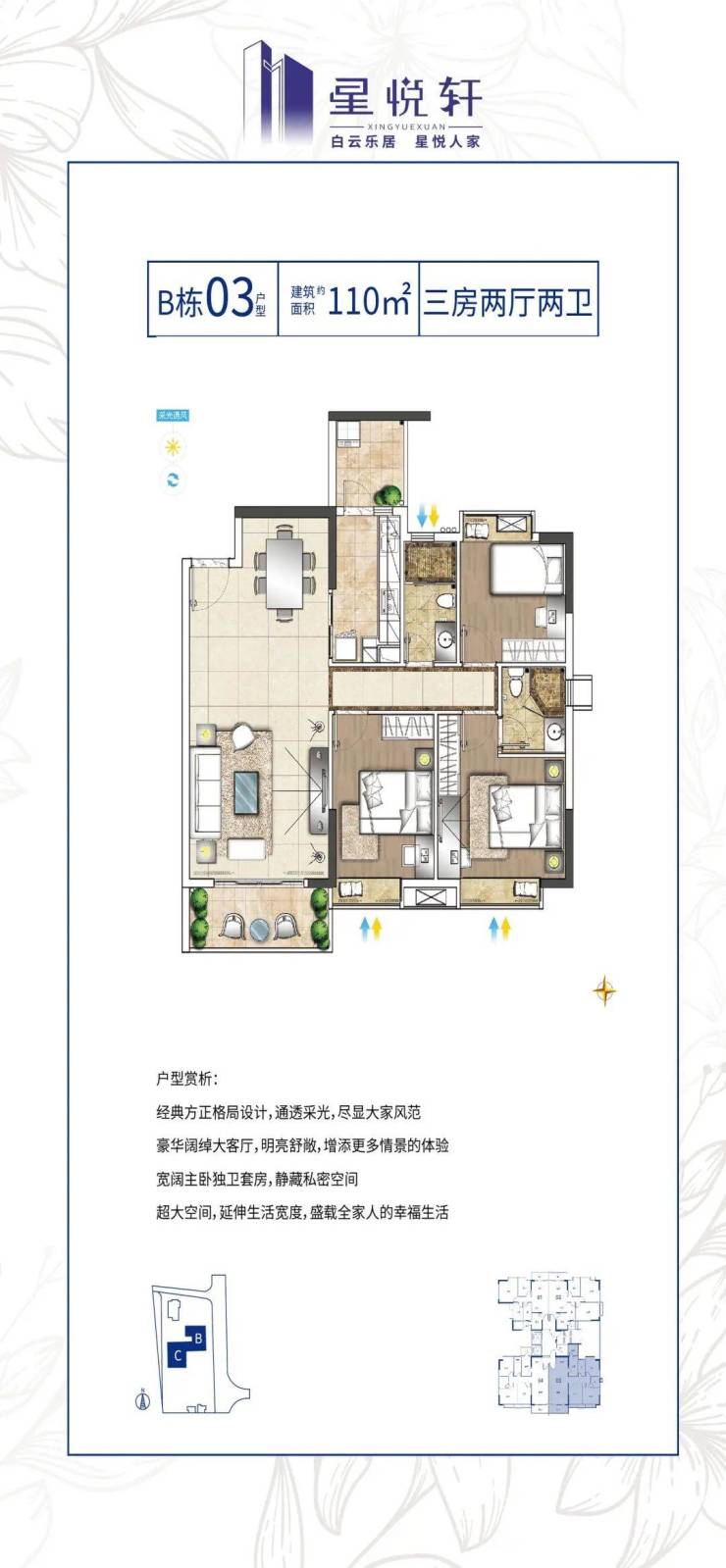 星悦轩约75-110㎡奢阔二至三房充考虑居住空间的功能性,产品格局方正,动线合理,充足采光,以懂生活的房子臻藏美好时光。