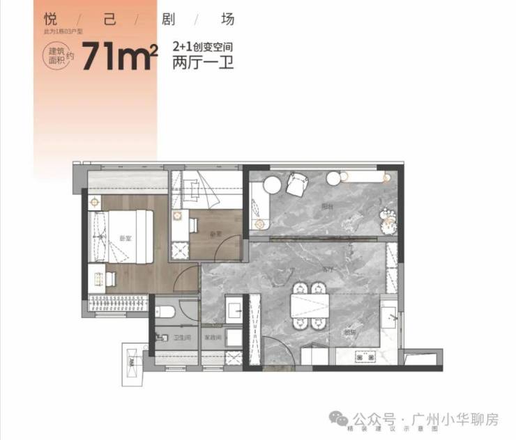 71㎡2+1创变空间2厅2卫,悦己主义者的家