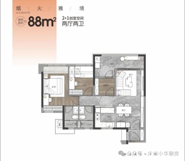 108㎡2+2创变空间2厅2卫,精致主义者的家
