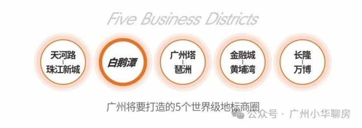 白鹅潭商务区:广州市重点培育的五大世界级地标商圈之一,规划面积达36平方公里,相当于6个珠江新城;