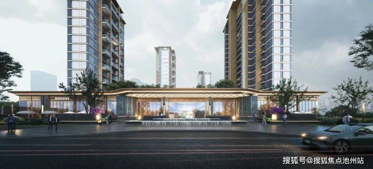 约86米超宽门庭领先经开,流金穹顶与奢石肌理交相辉映,展露大家门第气象。