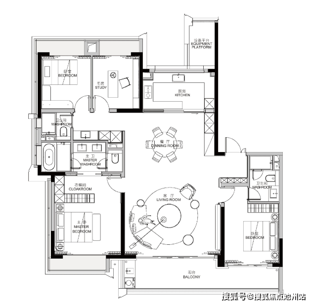 细节处理也非常人性化,例如客卫设计了洗衣房,增加的收纳空间、预留智能家居接口,整体设计优化采光通风等,都体现了其对未来生活方式的超前洞察。