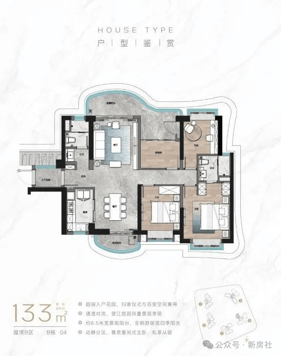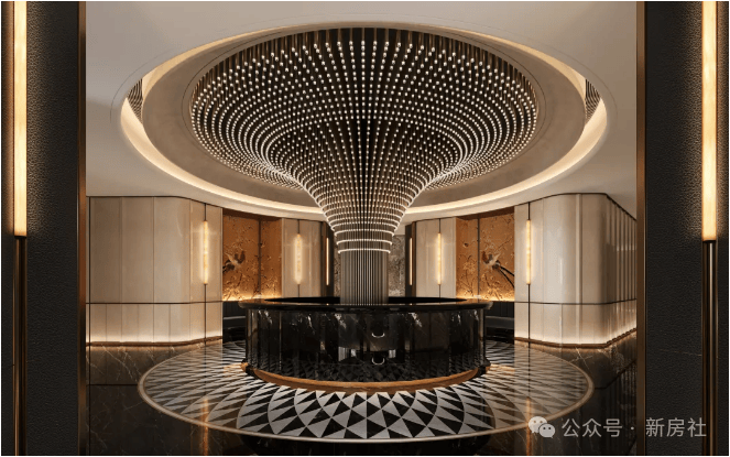 八重酒店式归家礼序,选用博物馆级环球石材,打造酒店式社区落客区;社区迎宾大堂(层高约9米);四季风雨连廊;单元豪华大堂;超配车库入口;车库地下豪华大堂;精装车马厅;臻享高定生活入户礼遇,塔尖圈层生活境界。