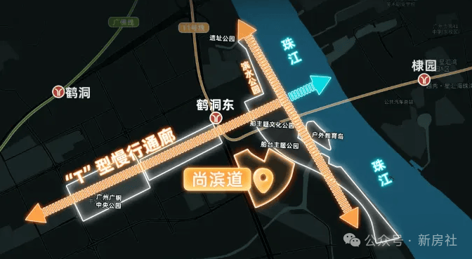 尚滨道位于项目配套最集中的区域上盖。船台1914的艺术、滨江公园的松弛、滨水商业的繁华、零距离亲江的步道,全都是下楼即享。而低密的楼栋布局,叠加与珠江250米的平均退距,则带来了顶级的江景视野。
