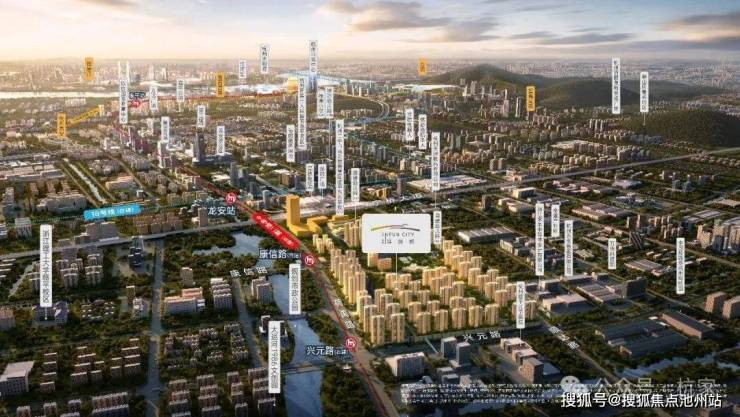 整个楼盘体量有约63万方,南北向纵跨了9号线兴元路站和康信路站两个地铁站。