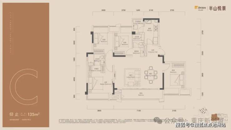 南向三面宽达14米,主卧套房配三分离卫浴及衣帽间。