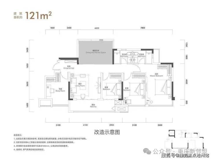 精装建面121㎡户型,2T4户,18层,195-240万(备案价240-270万)