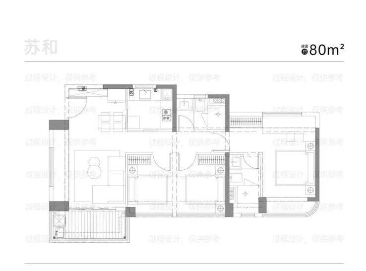 约87平的三房户型,整体会比80平的户型略优一些。