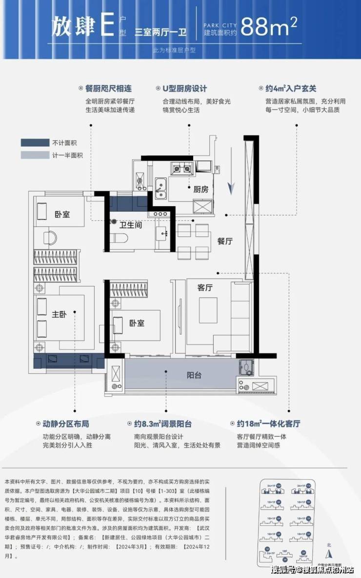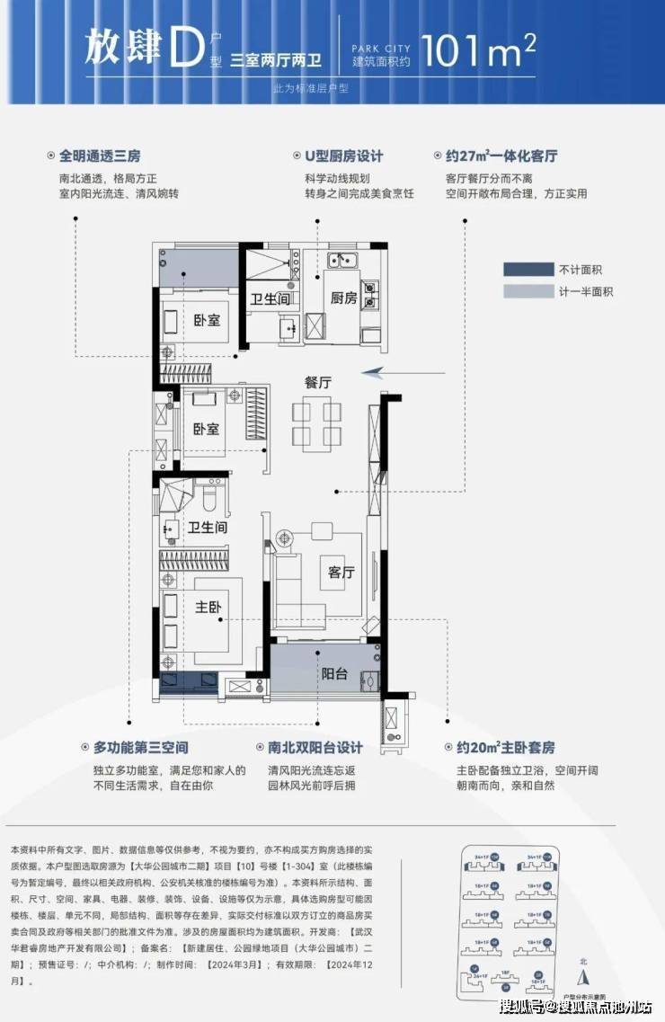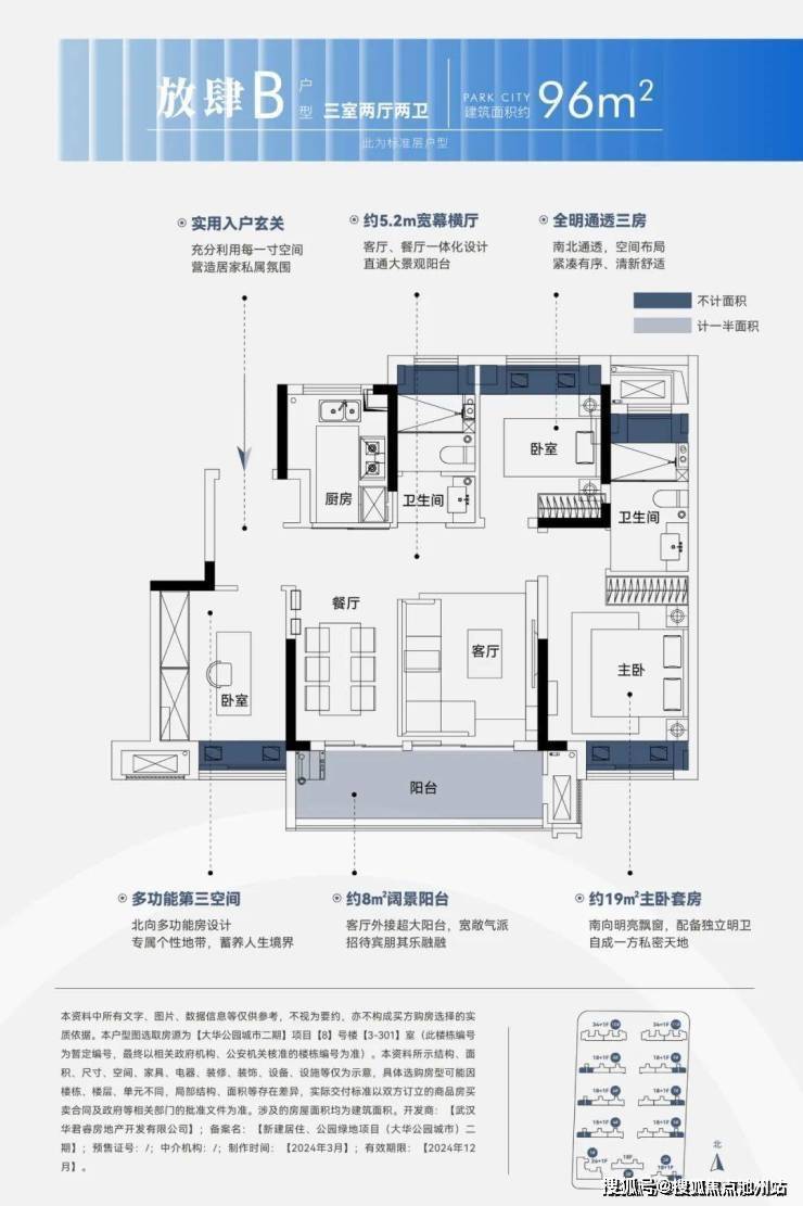 该户型为小高层8号楼西边单元仅有户型,南北通透,三开间朝南,建面约96平做通透边户,整个武汉都比较少有。