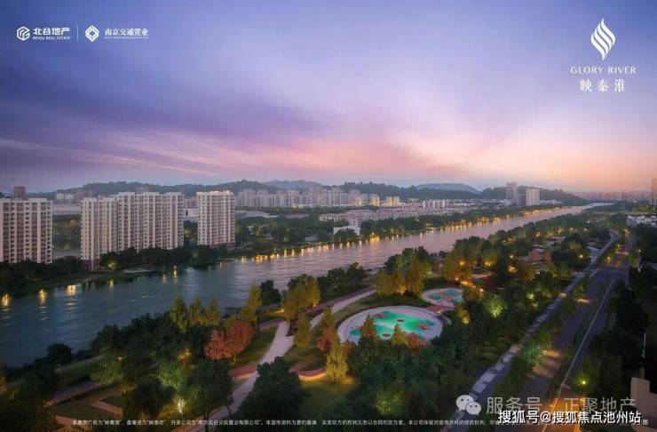 引入秦淮河景资源,林水渗透,城市河畔与内部园林的无缝链接,营造自然栖居谧境。
