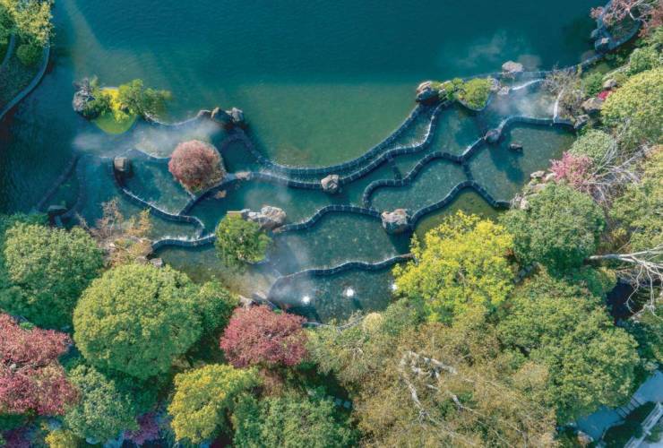 湖山天境最大的亮点便是其临湖而建的独特设计。推开窗,江南庭院的绝美风光毫无保留地映入眼帘,近处的院落、远处的山峦,泼墨一卷“虽为人作,宛自天开”的诗意江南,每一幕都是风情。