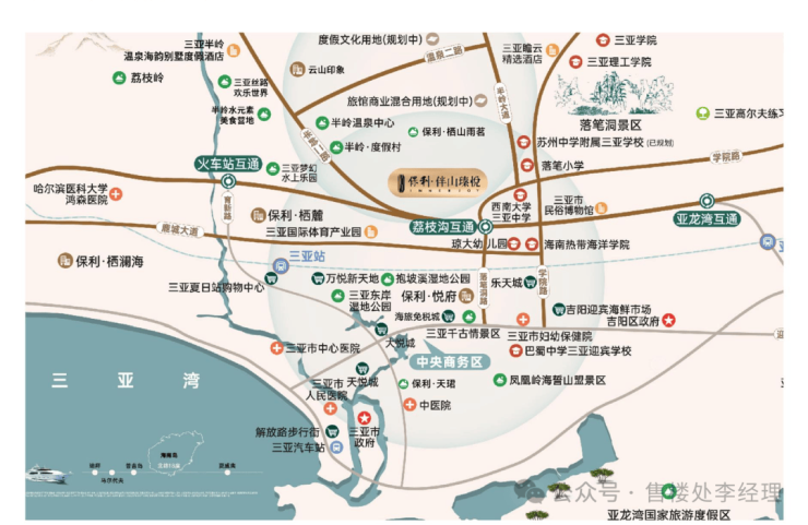 三亚保利伴山瑧悦位于海南省三亚市吉阳区迎宾路与师部农场路交汇处,是保利发展开发的 “城市封面、山景封面、瑧悦藏品、国匠都市顶豪” 项目。以 “山景之心、湾区封面、瑧悦藏品、中心生活” 为核心价值,是“瑧悦”系在三亚的封面作品,定位为城市山景与湾区交汇处面向全国高净值家庭、企业主与投资人群的品质标杆。