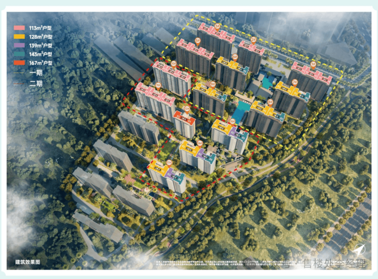 项目信息:项目为山景高层社区,总建筑面积约15万㎡,容积率约3.0,规划包含瞰山大平层、山景叠墅、云端会所、无边际泳池、直升机停机坪。产权70年,精装交付,预计2027年底交付。