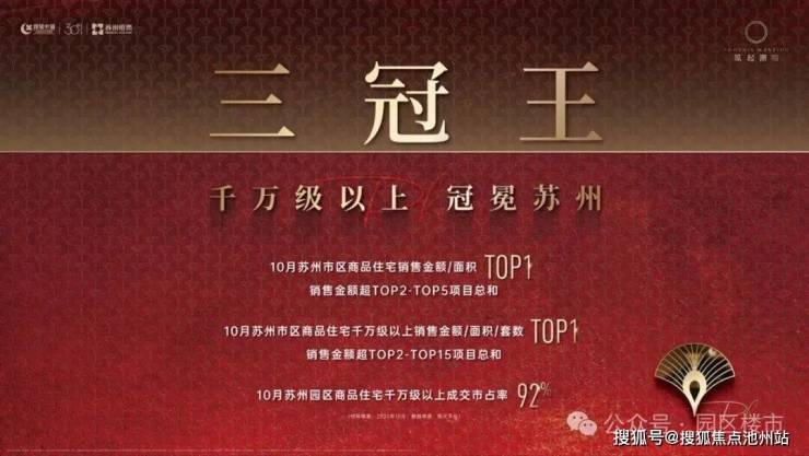 绿城·凤起潮鸣,10月销售金额、面积、套数TOP1的澎湃热势,荣膺苏州千万级以上三冠王,同时10月苏州市网签金额霸榜TOP1。
