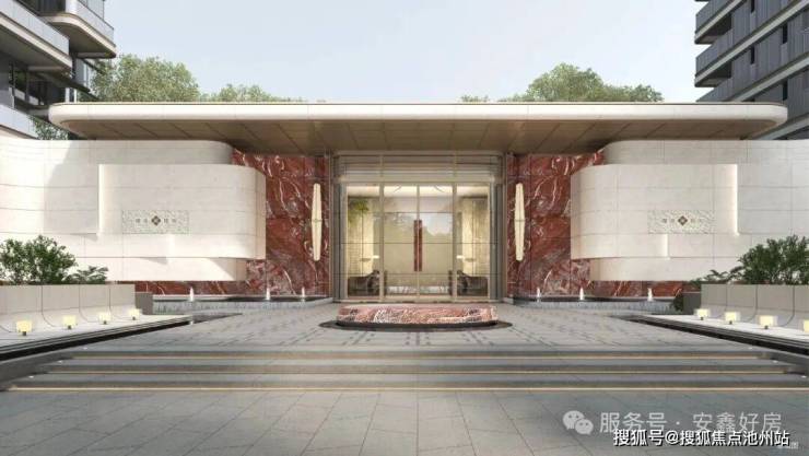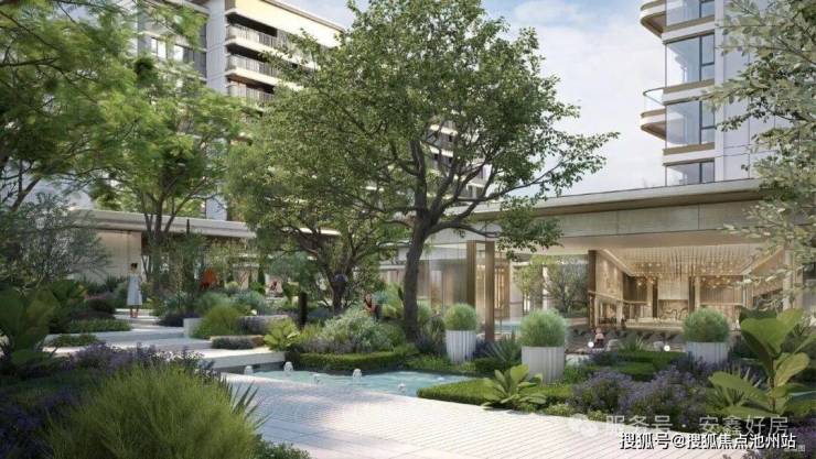 商业情景街区与自然景观无缝衔接,酒店式环岛归家入口。