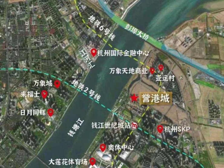 誉港城项目紧靠钱江世纪城公园,南面是奥体中心,北面是亚运村。项目依水而居,鼎江而立,风水极佳,江对岸就是钱江新城“日月同辉”,地理位置相当优越。