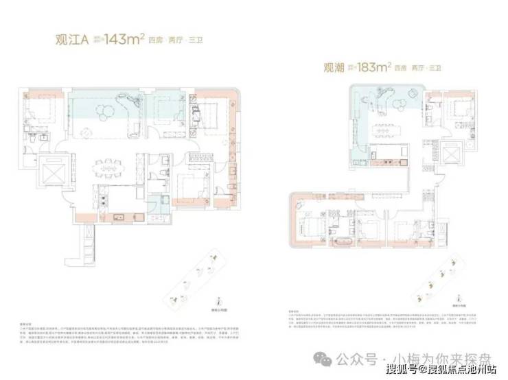 城建江南岸户型图已经更新,也是标准的准四代户型,目前公布有143、183㎡两个户型。算上赠送面积,得房率最高可达113%。而且户型是专门为了看江而优化的,主卧和客厅都有较好的看江视野,尤其是183㎡户型,客厅是270°无遮挡看江。