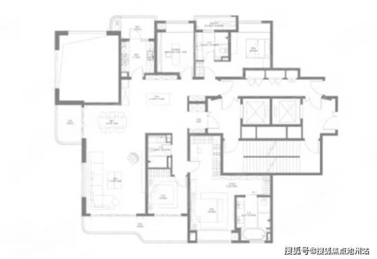 该楼盘目前主力在售的是 225㎡天空墅户型。此户型摒弃了传统一面采光的设计,将挑空的客厅置于南北向,让客厅同时拥有两面采光。搭配约 6.2 米的挑空距离,使得每一户都拥有 270°环幕视野,视野更为开阔,为居住者打造了更高品质的居住体验。另外,还有 225 平户型采用了客厅挑高设计,整体为 4 室 2 厅 3 卫 1 厨的结构。
