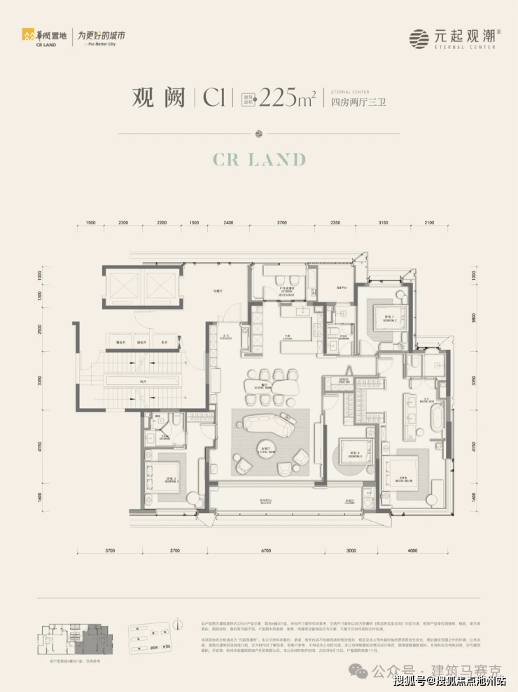 元起观潮府的空间设计堪称一场“居住革命”。高层主力户型以225㎡起跳,叠墅产品更达260-420㎡,这种“超级尺度”不仅体现在数字上,更在于对生活场景的深度重构。传统电梯厅被颠覆为“花园式全明电梯厅”,归家仪式从踏出电梯的瞬间便已开启;阳台空间突破常规,L型环幕阳台与洄游早餐厅的组合,让都市人在绿意环绕中享受慢生活的奢侈。