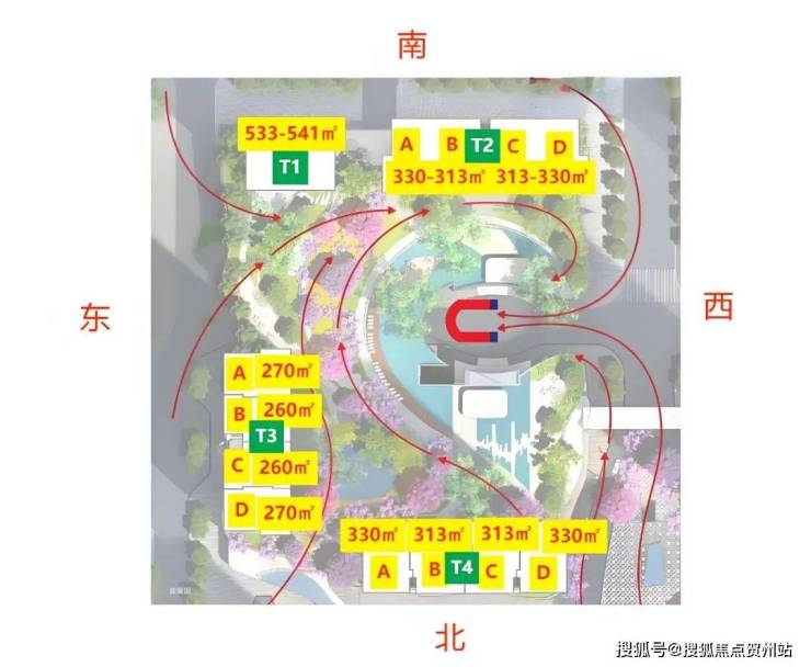 T1栋则是更加奢华的3梯1户(一层只有一户),533-540㎡