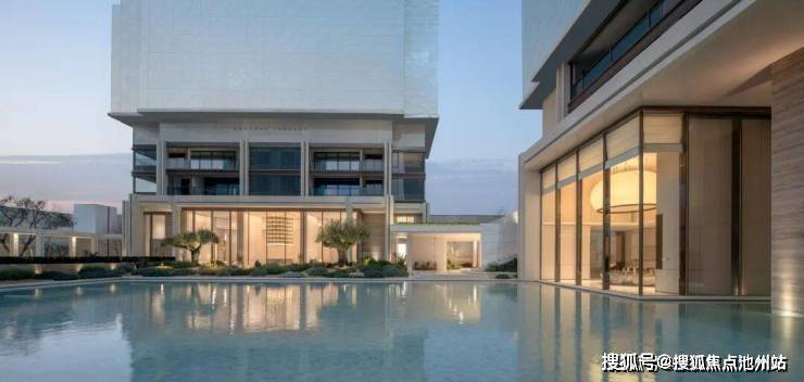 首先整个项目的石材含量特别高,用了大量石材与仿石铝板,强调了它的厚重感。从门头开始,到园区柱廊,璟逸都用了大片的纯色系石材,就像一座隐奢酒店,就连连廊的吊顶,都全是同色莱姆石。