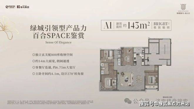 143㎡三/四室:独立玄关+800库收纳空间;约14米面宽;客餐厅连通,约6.75大宽厅;主卧开间约4.1米,带270度拐角落地窗。缺点是有两个北卧。