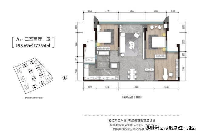 金鹏·春晓蘭庭 平层户型·建面/93㎡