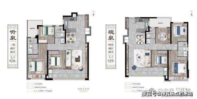 1/5号楼,总高27层,两梯四户,1个单元,户型106平三室两厅两卫、129平四室两厅两卫,毛坯交付,公摊28%, 106平总价150万-170万(均价14200-16000元/㎡); 129平总价188万-210万之间(均价14500-16300元/㎡), 目前仅剩25层以上楼层。