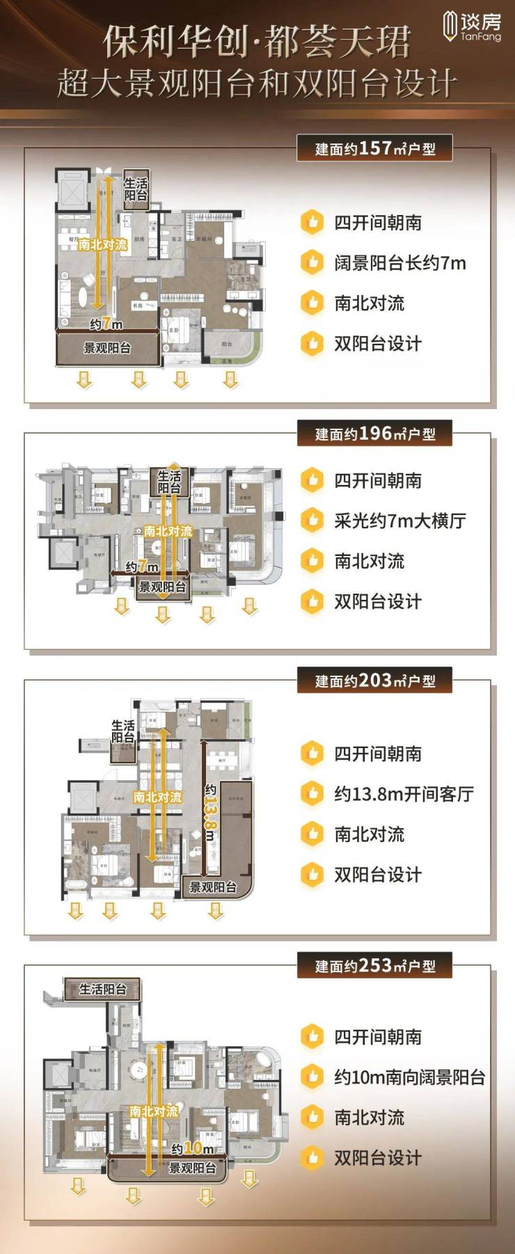 重点是,在都荟天珺的所有户型设计中,不仅有超大的景观阳台,还有承载生活烟火的生活阳台。