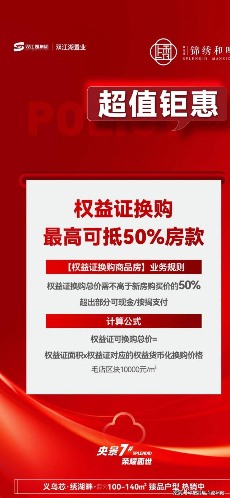 根据规则,权益证可换购总价=权益证面积*权益证对应的权益货币化换购价格(毛店区块对应的权益货币化置换价格为10000元/㎡),可抵用总价不高于商品房购买价(如购买多套商品房的,则为多套商品房的购买价总和)的50%,超出部分不予折现、退还,剩余房款可通过按揭贷款支付。此外,“换购”支持一换一、一换多、多换一、多换多,即一本或多本权益证可以置换参与项目的一套或多套新房。
