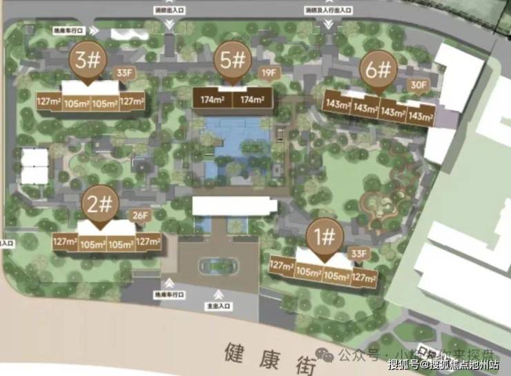 【梯户比】:两梯两户(143㎡、174㎡)、三梯四户(105㎡、127㎡)